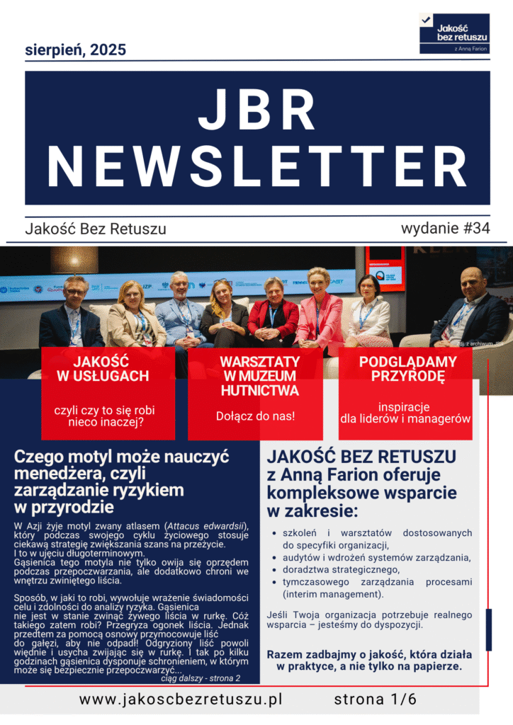 W obliczu nadchodzących zmian w normie ISO 9001:2026, które jeszcze mocniej podkreślają rolę analizy ryzyka, kultury jakości, cyfrowej transformacji oraz odporności systemów, zdolności adaptacyjne i zarządzanie zmianą przez JAKOŚĆ BEZ RETUSZU z Anną Farion mogą okazać się strategiczną inwestycją w rozwój organizacji.