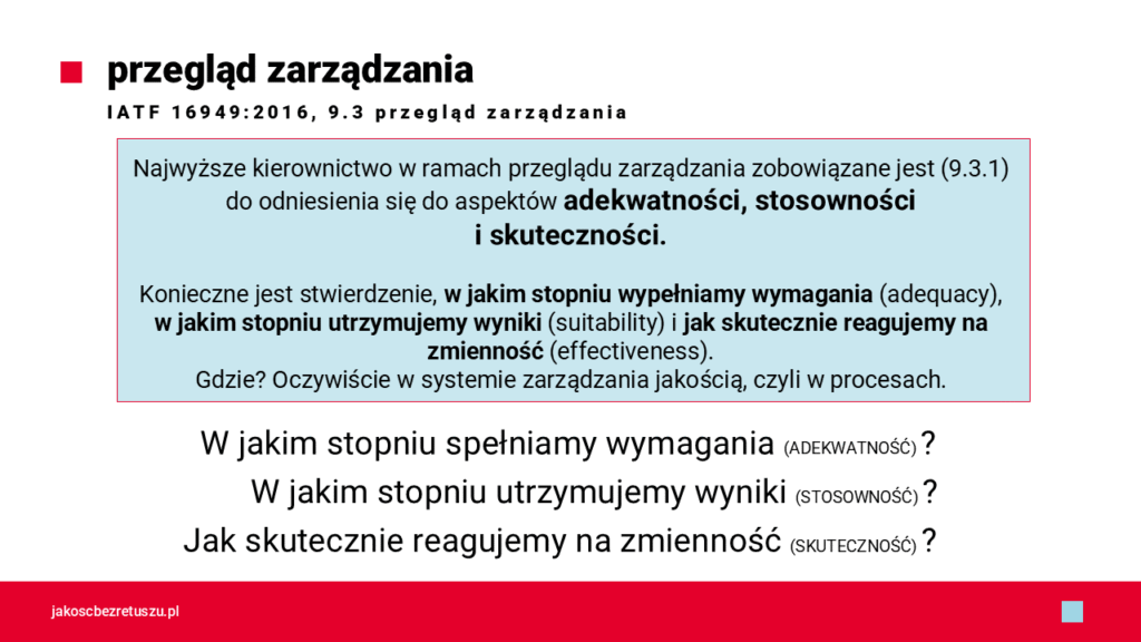 - w jakim stopniu spełniamy wymagania naszego systemu zarządzania (ADEKWATNOŚĆ)?